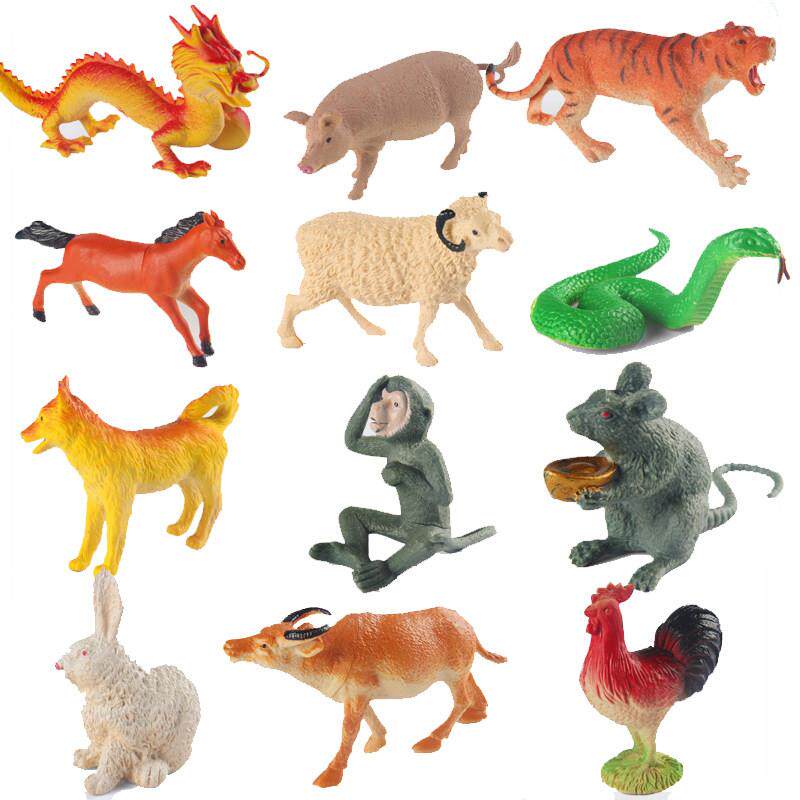 十二生肖玩具12生肖模型恐龙老虎儿童玩具大号软胶动物玩偶兔牛猪