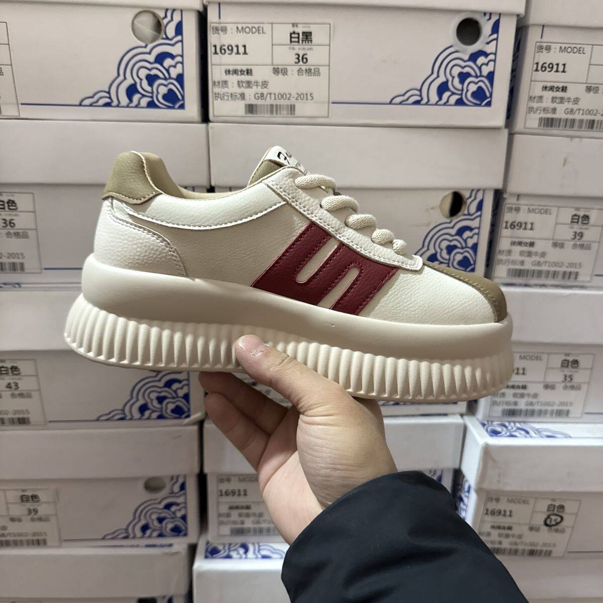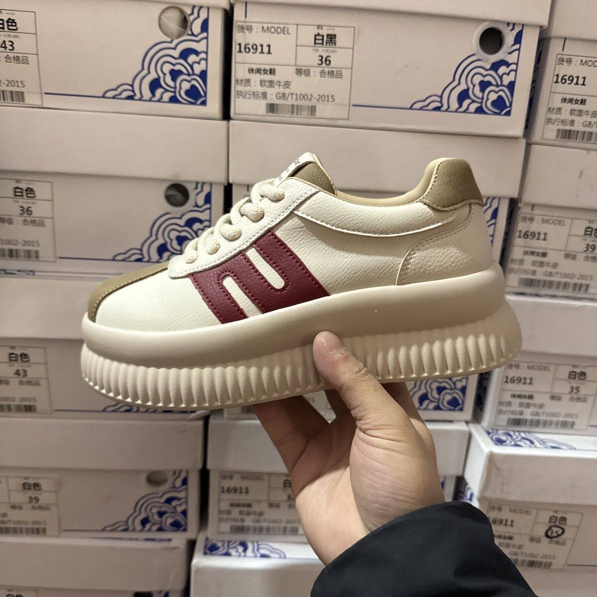 德训板鞋 女春秋洋气增高温州鞋 潮 厚底真皮松糕鞋 超轻实体撤柜断码