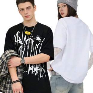 潮牌休闲印花上衣纯棉情侣款 新款 280g宽松t恤男款 短袖 T恤 夏季