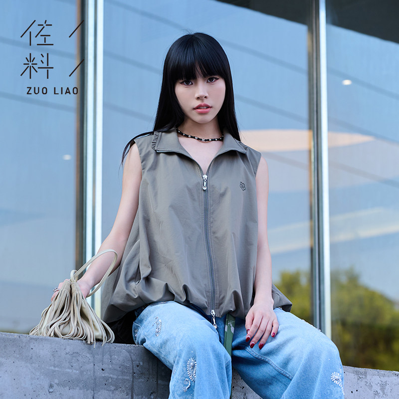 佐料原创设计时尚 ZDD1M092 简约拉链束脚宽松马夹甲纯色百搭女装