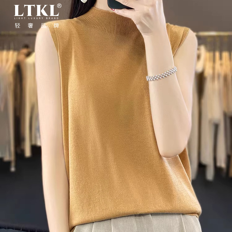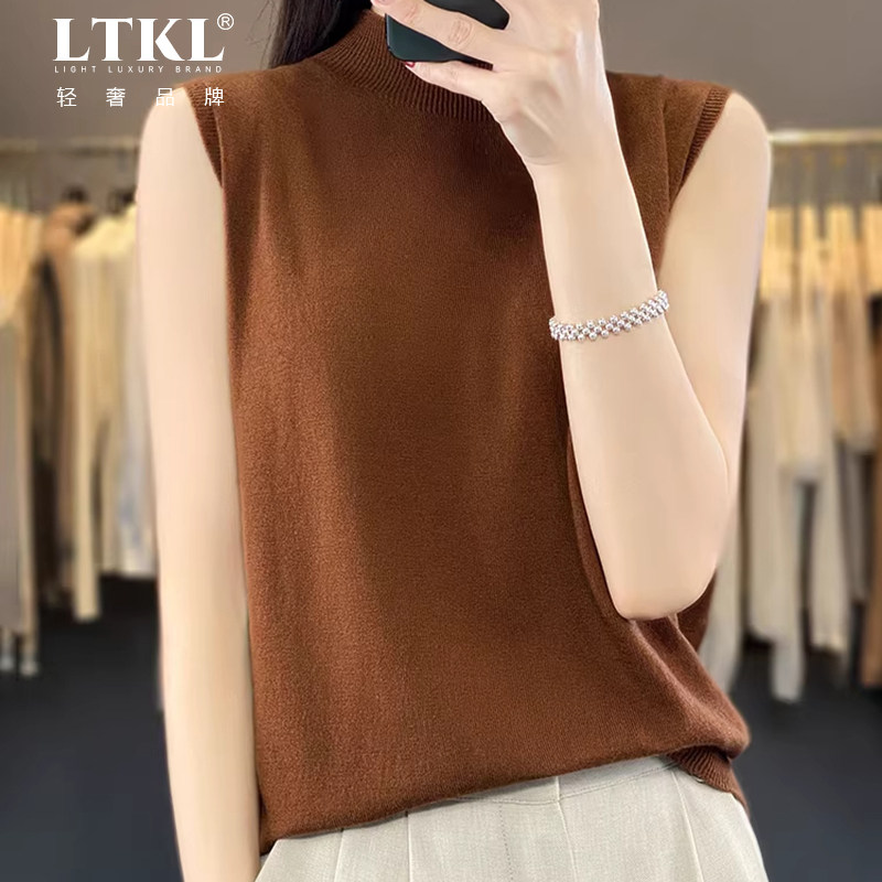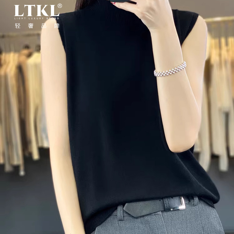 针织打底衫 百搭上衣洋气吊带内搭加大码 背心女2026新款 半高领无袖