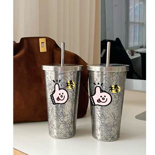 3.25 重工浮雕星星家不锈钢杯子配吸管
