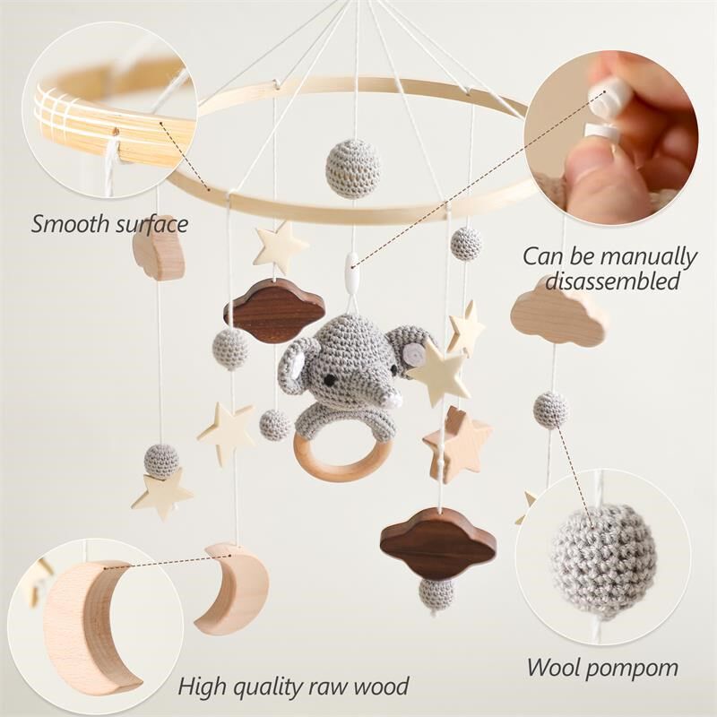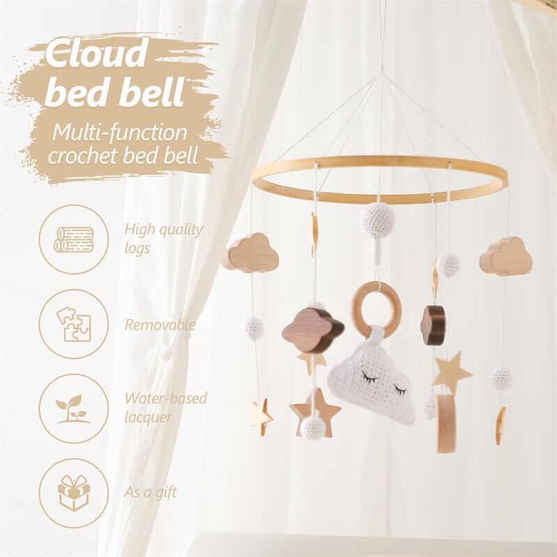 风床铃新生婴儿床床头摇铃床铃手工钩针木质婴儿房挂件