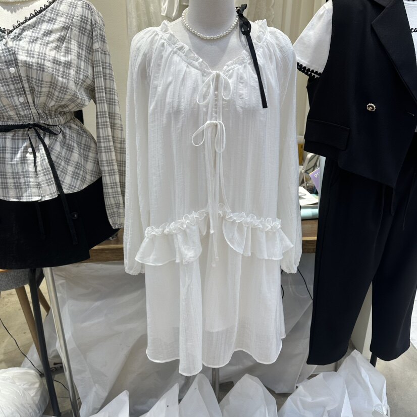 吸睛连衣裙 甜美宽松型木耳边设计感时尚 HOLYBANANA韩国正品 代购
