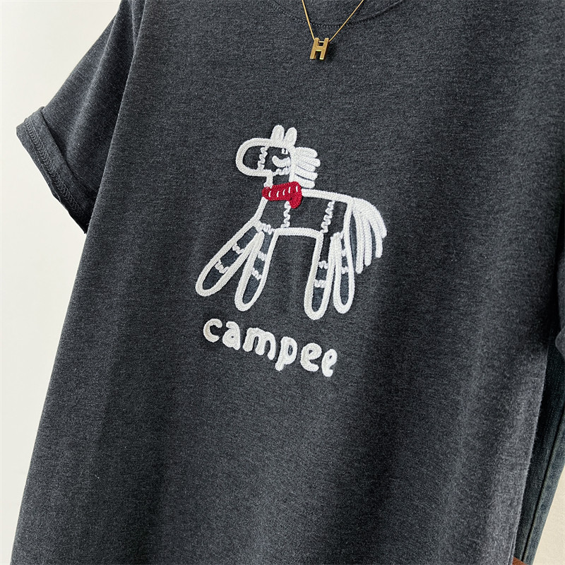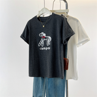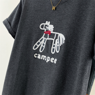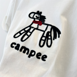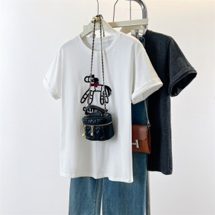 国潮正肩短袖 新款 t夏季 宽松显瘦半袖 潮牌上衣 短袖 刺绣纯棉T恤美式