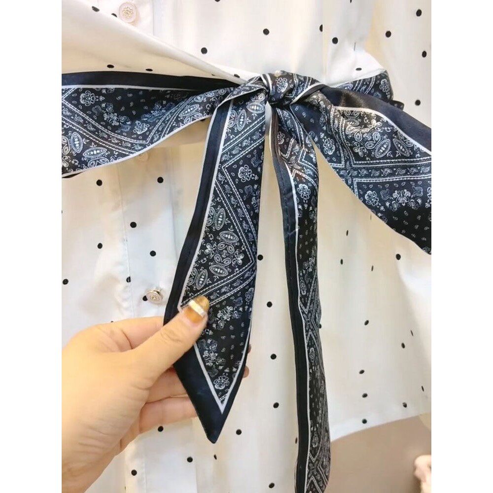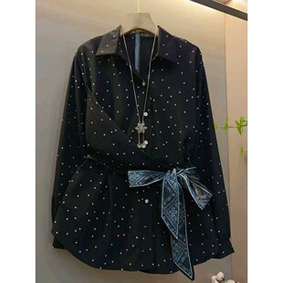 新款 女装 法式 大码 收腰显瘦上衣爆 气质丝巾高级感波点衬衫 2026春季