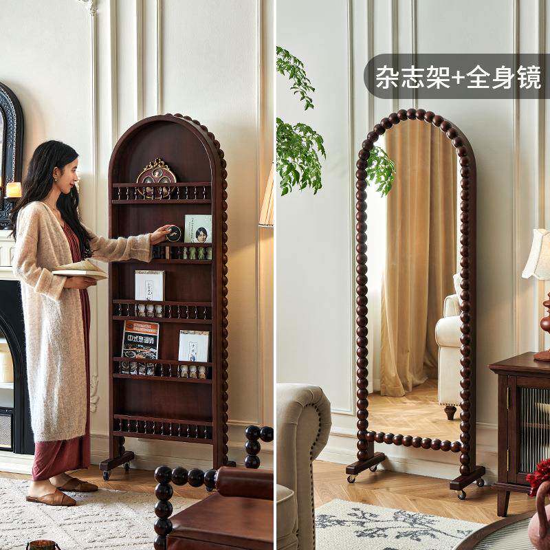 一法式 中风复A664穿衣架古全身镜杂志书两用落地穿衣镜古可旋转带