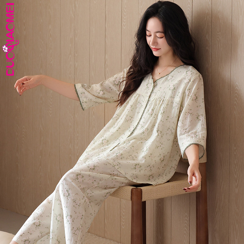 春夏款 家居服中袖 七分袖 薄款 两件套 九分裤 女士梭织莱赛尔睡衣套装