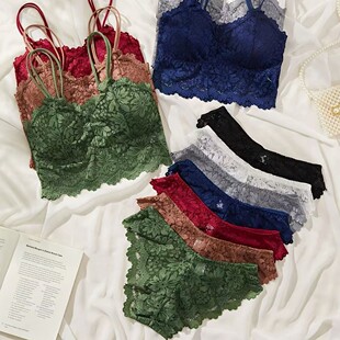TEMU大码 蕾丝内衣女性感裹胸小吊带美背无钢圈文胸可拆卸胸垫抹胸