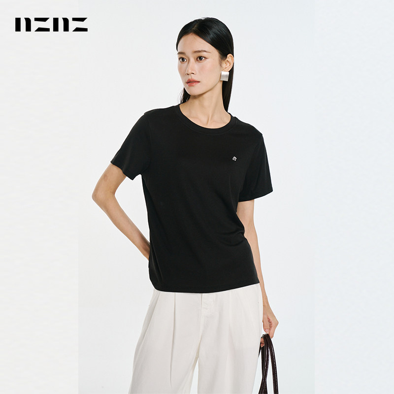 T恤女春夏显瘦圆领上衣 NZNZ莱赛尔亚麻刺绣短袖 李佳琦直播间