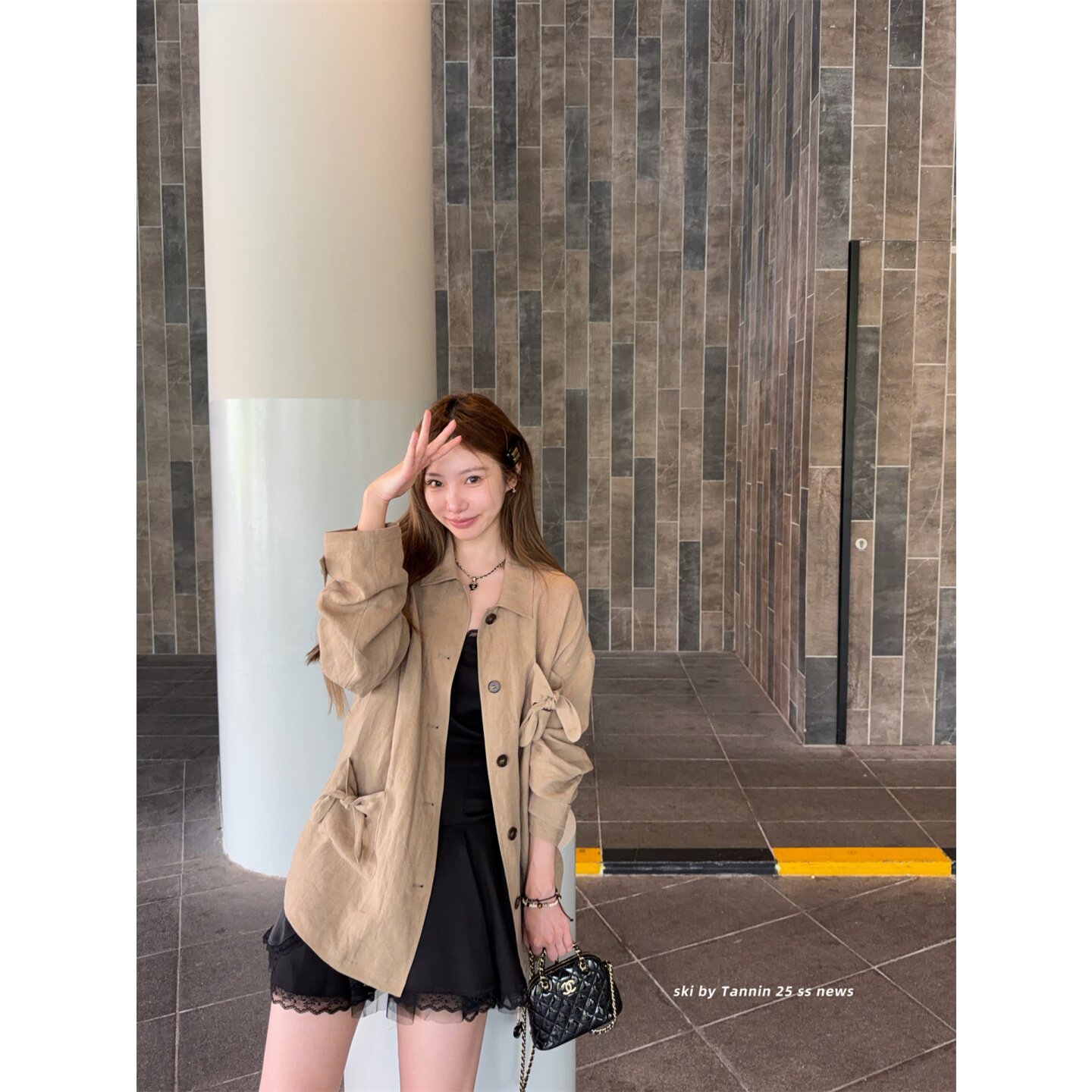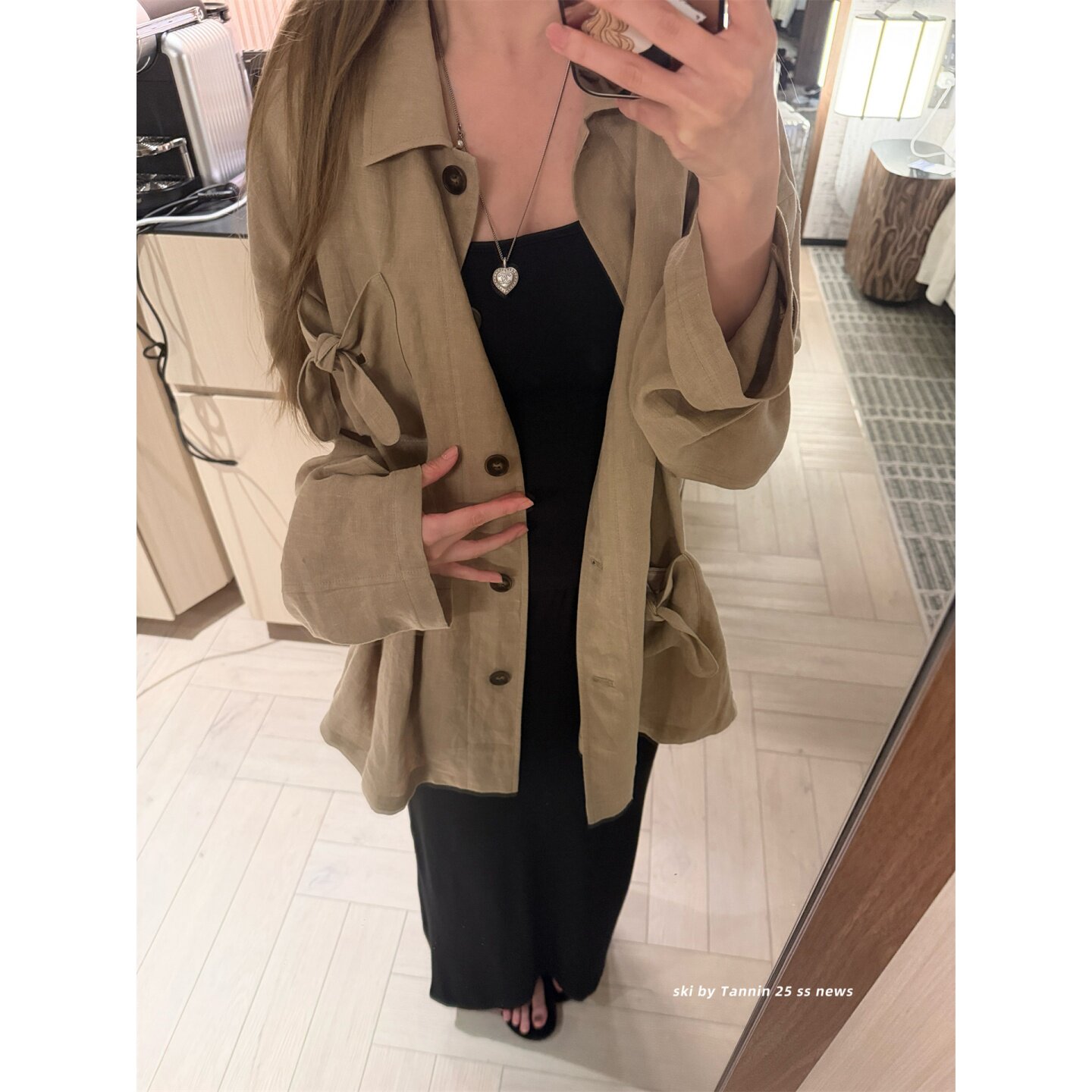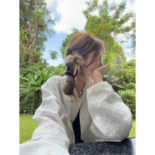淡人外套 Tannin赤兔 砂洗亚麻 不对称蝴蝶结口袋长袖 ski 衬衫