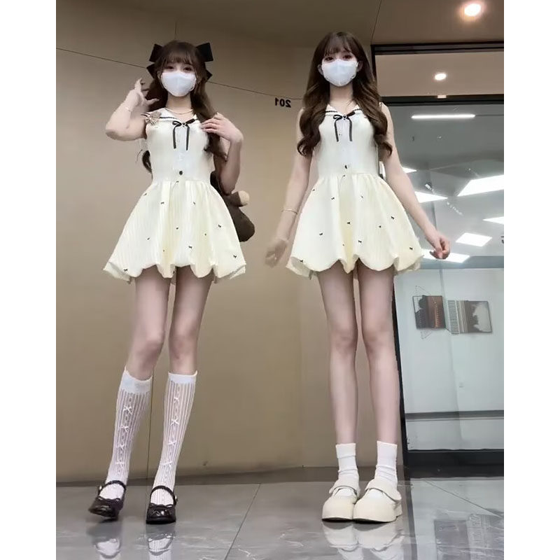 海军领法式 韩系气质巨好看高级感收腰显瘦短裙 花苞连衣裙子女夏季