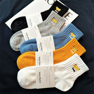 袜子男纯棉短袜ins潮中筒袜纯色四季 男袜吸汗防臭男生运动袜 薄款