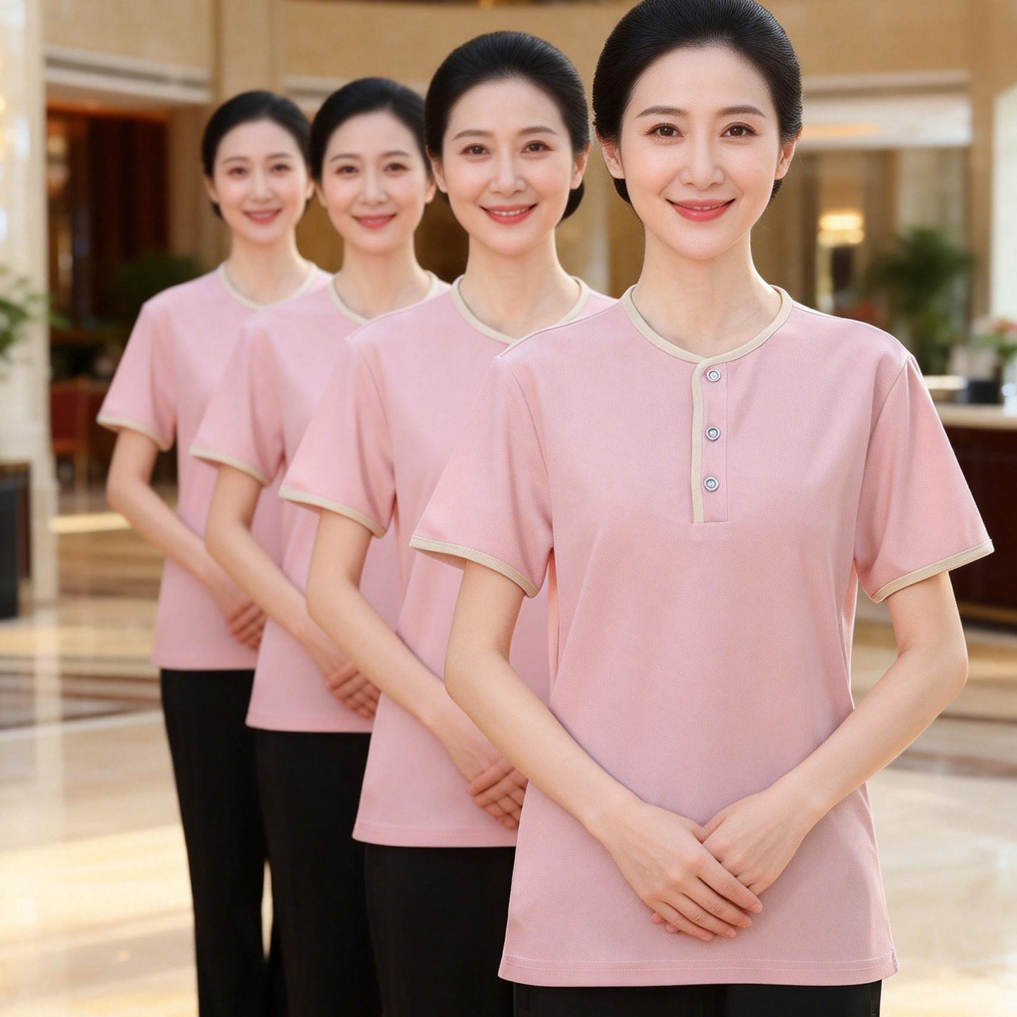 夏季 女清洁员宾馆酒店客房美容院PA会所T恤 高档保洁工作服短袖