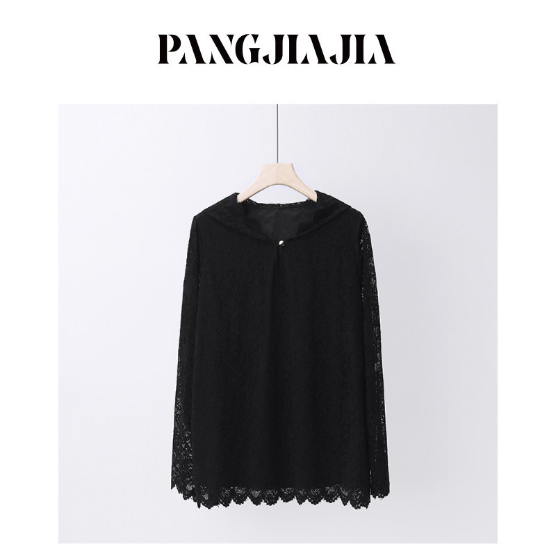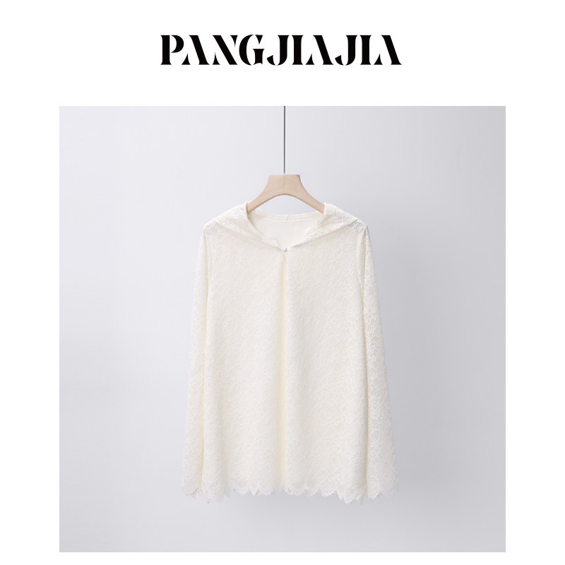 胖佳佳 气质长袖 胖妹妹mm大码 心愿蕾丝上衣夏季 连帽小衫 女装
