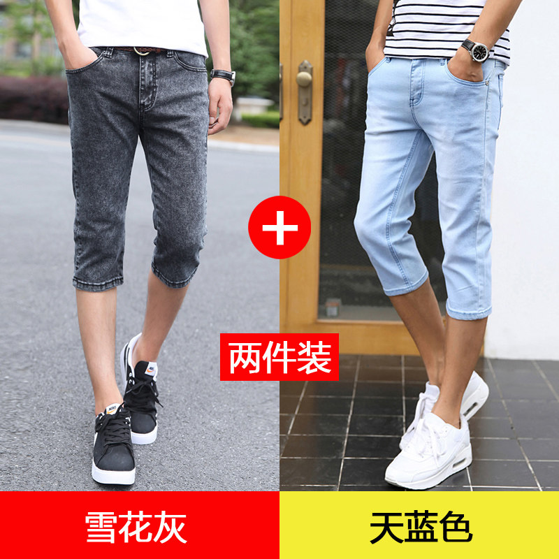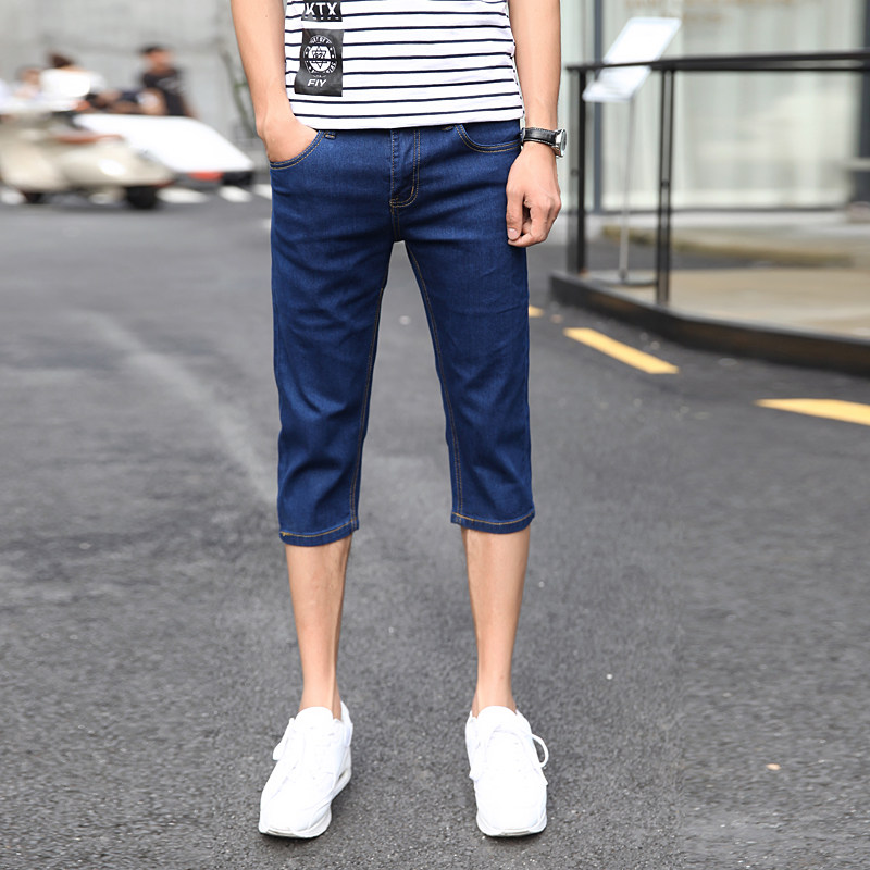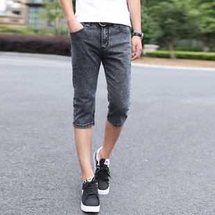 男生牛仔裤 夏季 潮流百搭弹力修身 薄款 小脚七分裤 7分裤 韩版 子 短裤