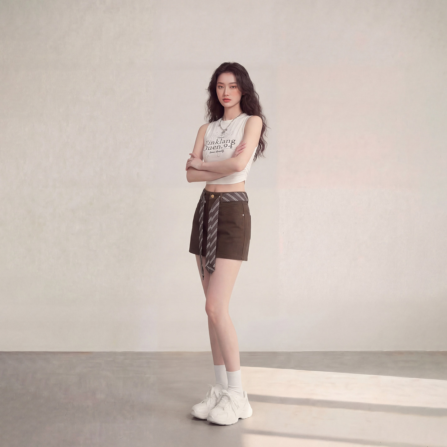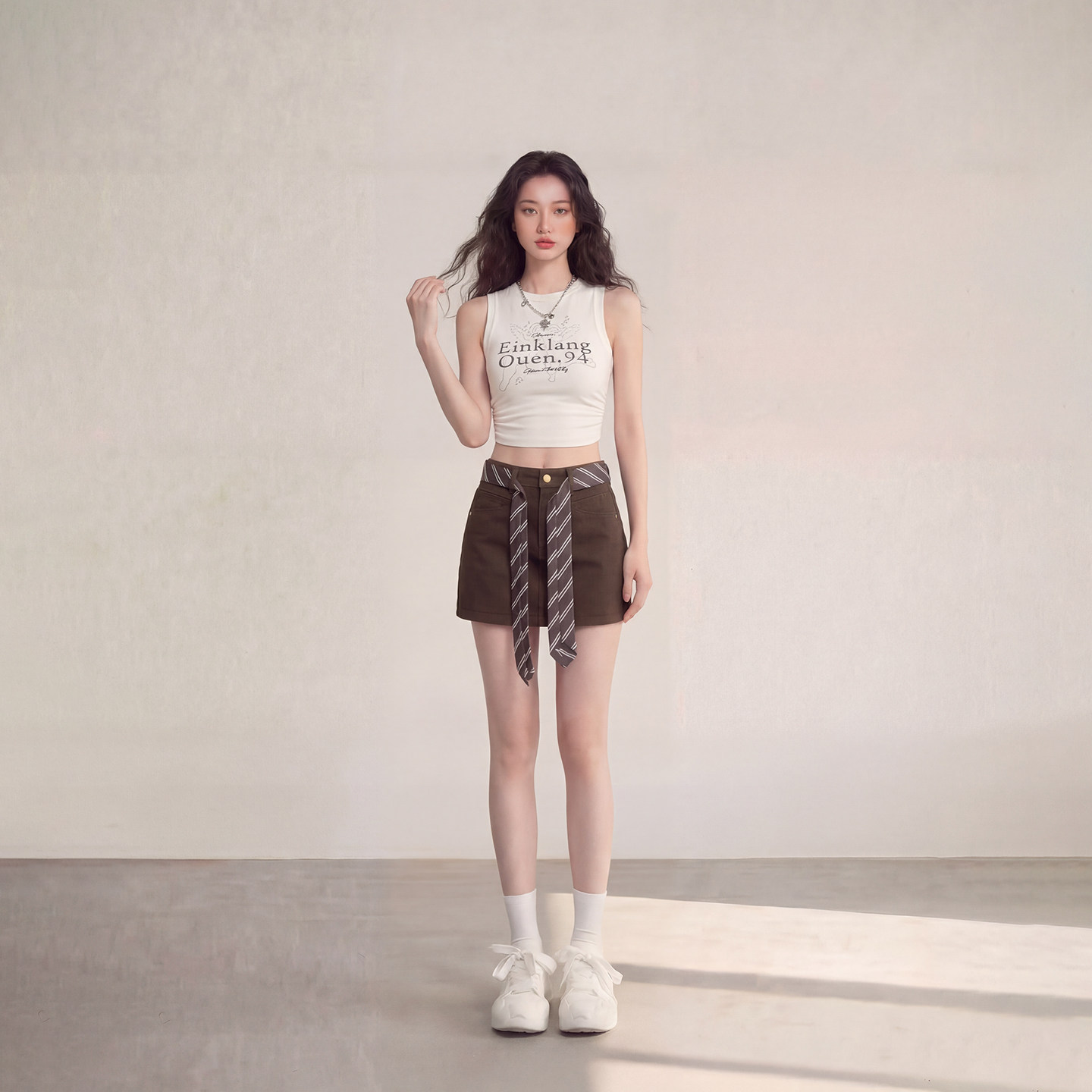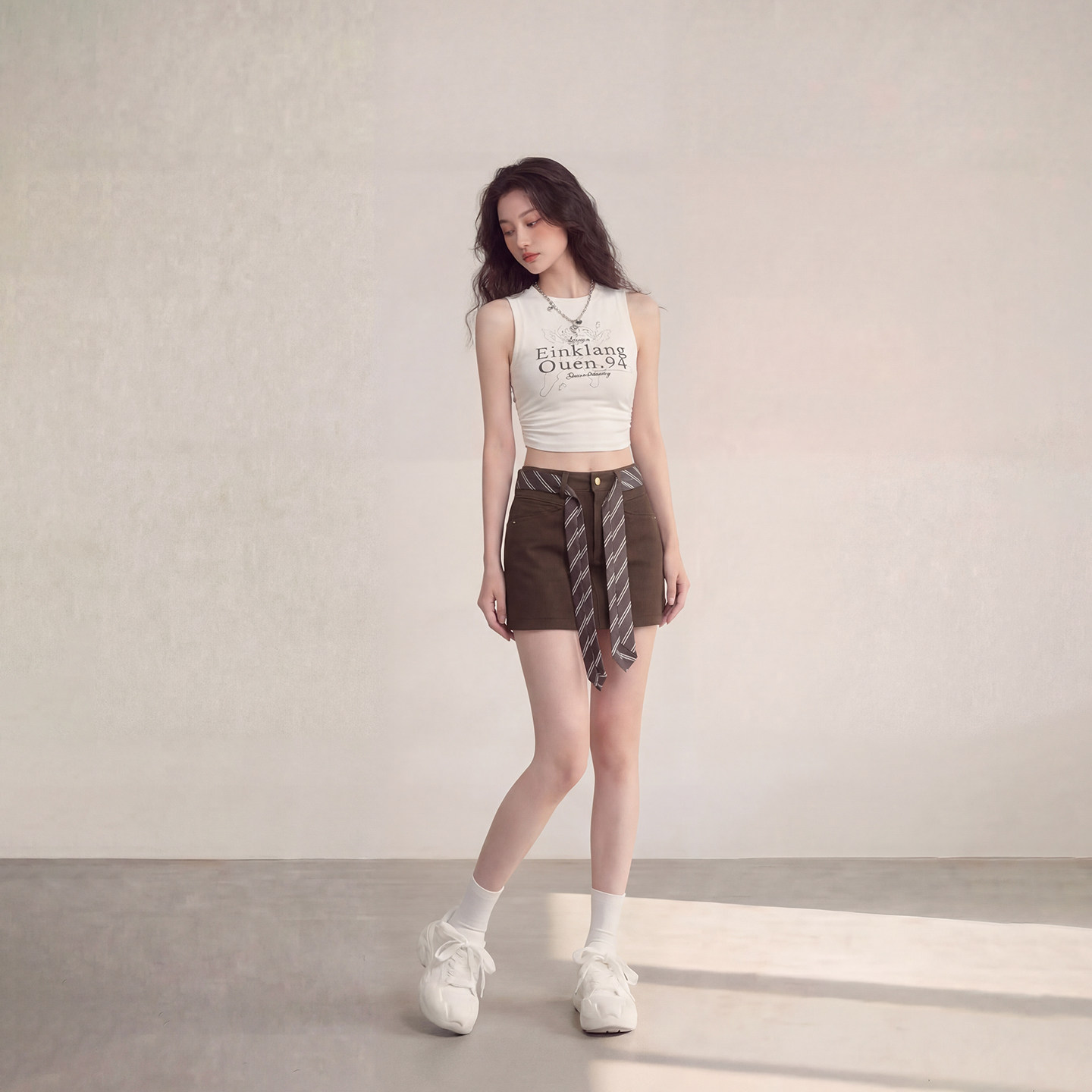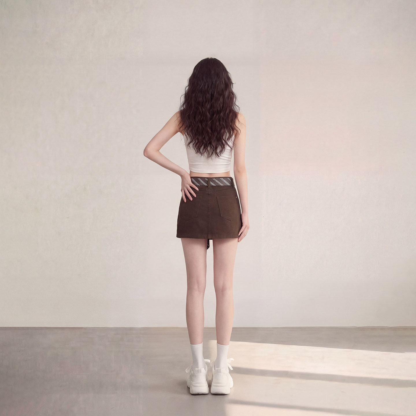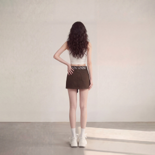 复古A字半身裙女2026春季 艾格辣妹风咖色时尚 系带牛仔短裙美式