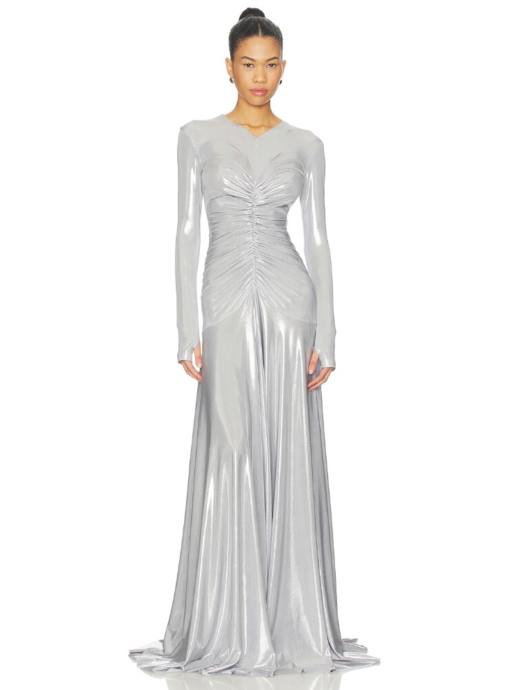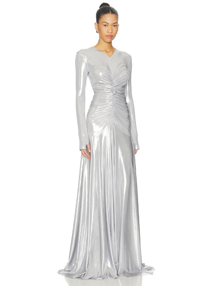 SHIRRED LONG 长裙 FLARED FRONT NECK SLEEVE Kamali Norma