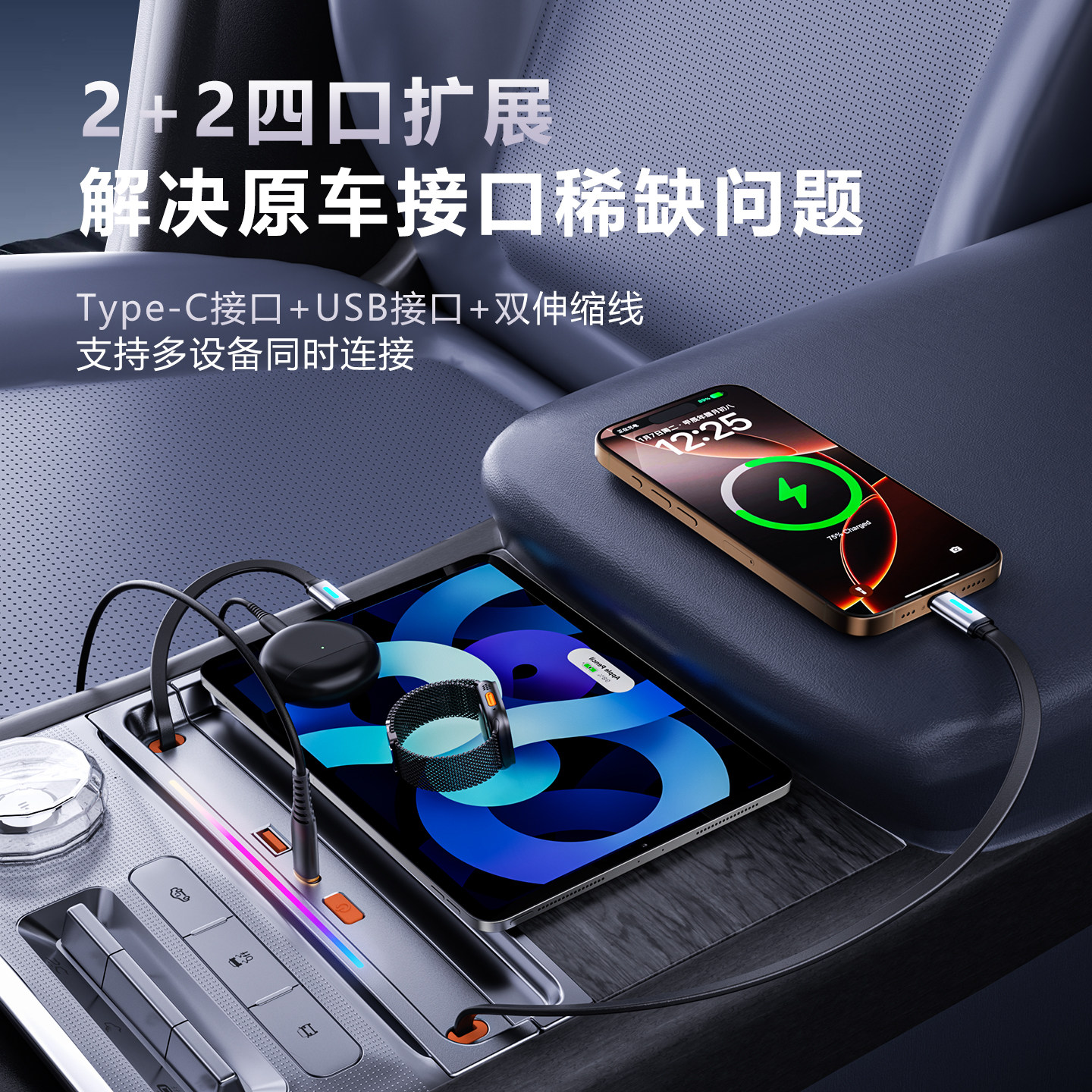 适用极氪9X车载拓展坞充电器超级快充USB转接头改装 配件type