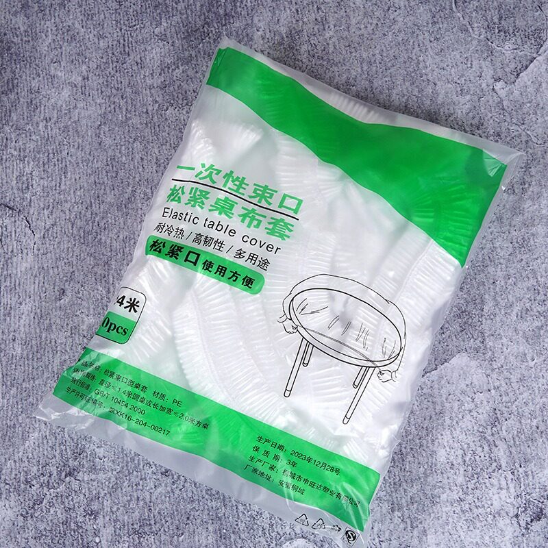 束口一次性桌布白色圆形方形家用防油渍聚餐酒席塑料膜免清理便携