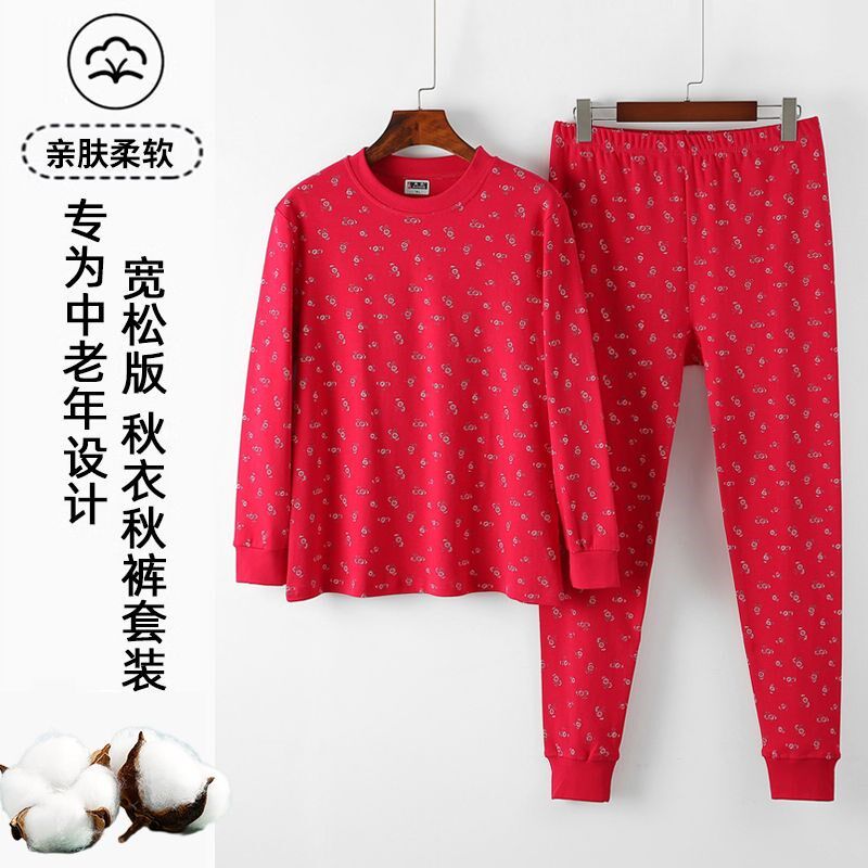 线衣线裤 妈妈秋冬棉毛衫 女针织内衣 套装 中老年人纯棉中领秋衣秋裤