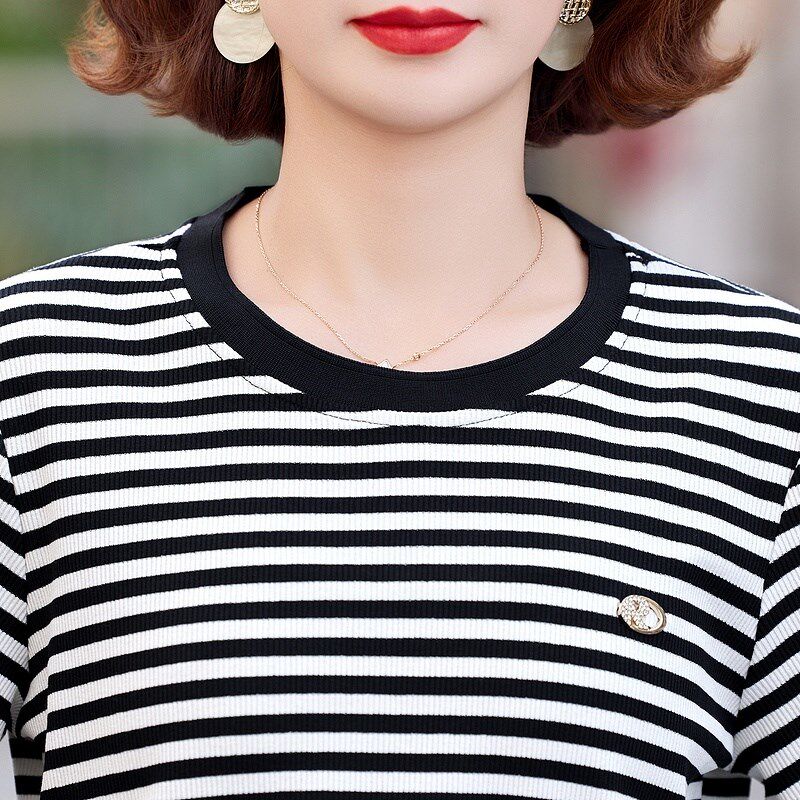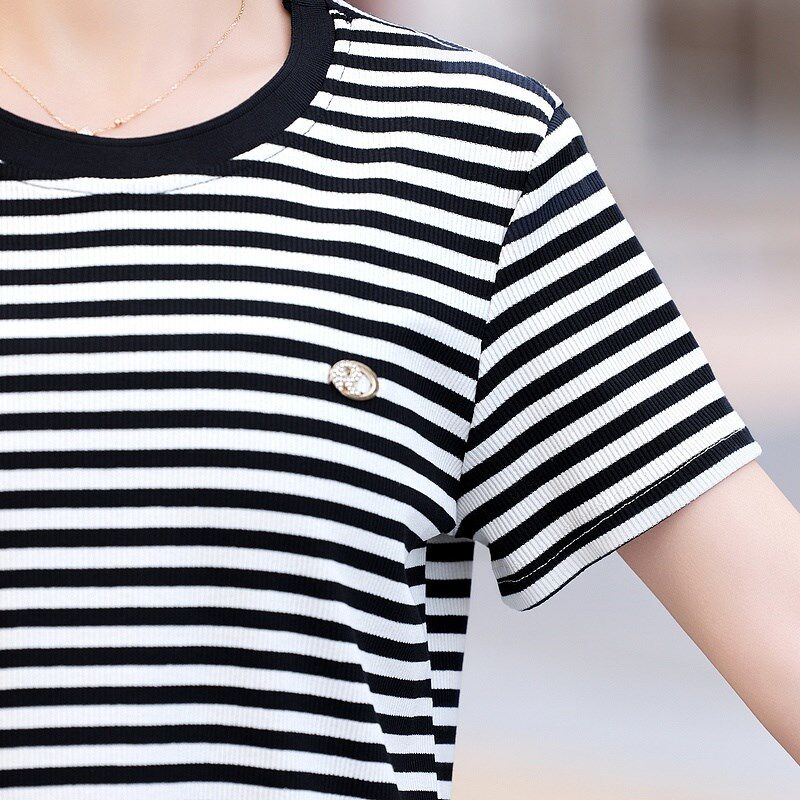 夏季 两件套条纹短袖 新款 40岁妈妈夏装 T恤女夏 运动套装 中老年女装