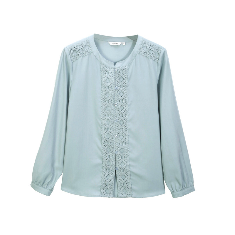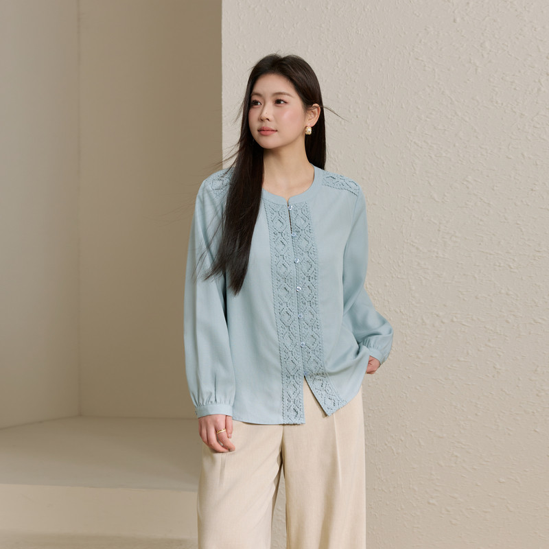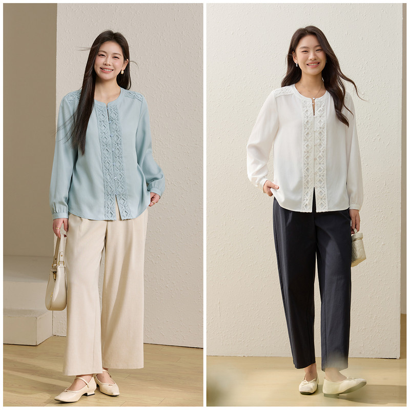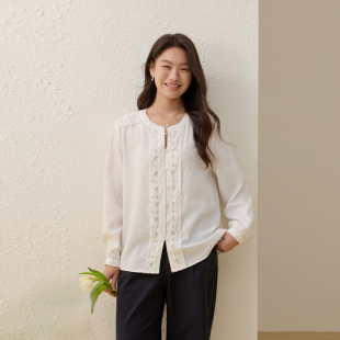 莱赛尔舒适上衣胖mm夏装 女装 纤莉秀大码 新款 精美花边温柔衬衫