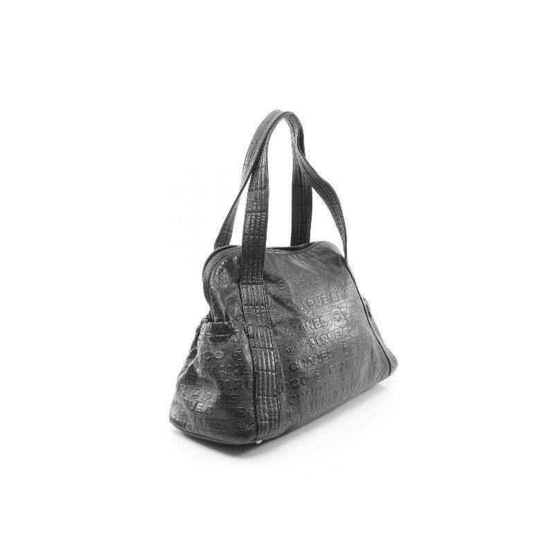 中古Chanel香奈儿女包B级9新Boston bag波士顿包牛皮手提包黑色