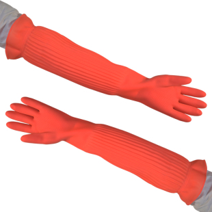 一体加长加厚乳胶洗碗洗衣家务防水清洁橡胶手套56cm送棉内胆耐磨