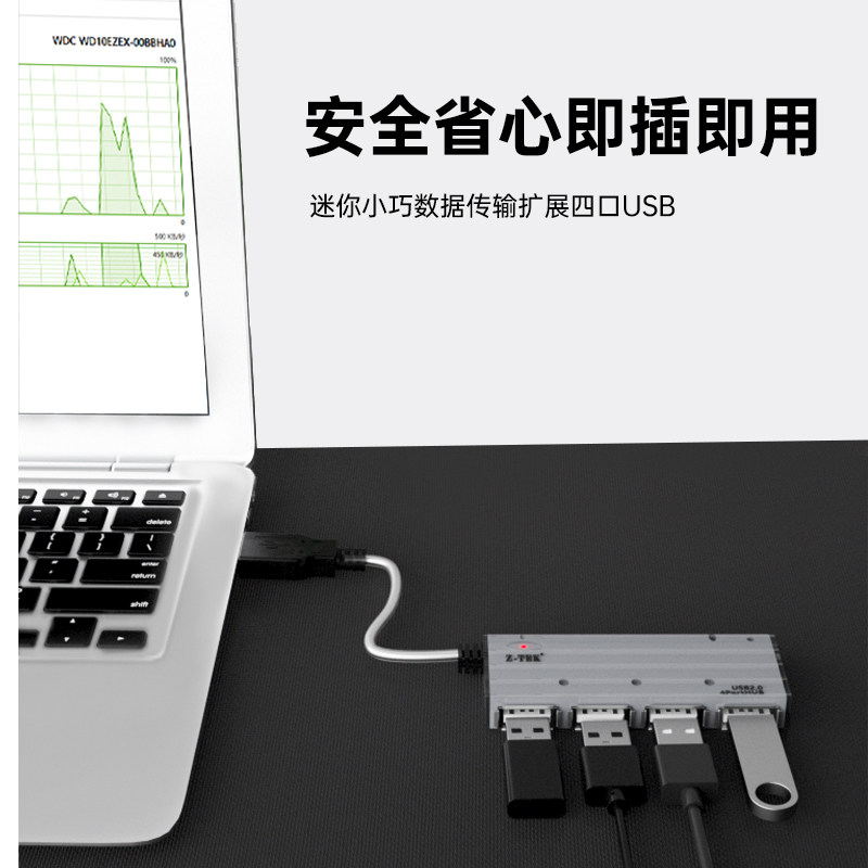 ztek力特usb分线器带电源笔记本电脑扩展器一拖四多接口hub集线器