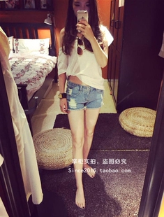 磨破a字热裤 显瘦韩版 女毛边2024春夏修身 低腰破洞黑白色牛仔短裤