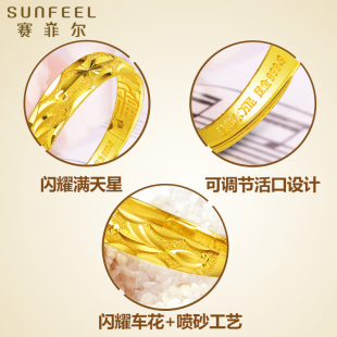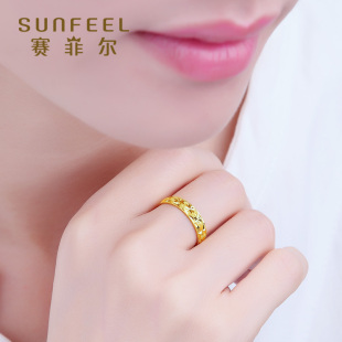 赛菲尔黄金戒指足金999.9活口女戒满天星足金戒指珠宝情侣首饰