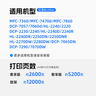 2890 DR2250墨粉盒 7060D粉盒HL 7290 7860DN 2250墨盒MFC 7057 2240 TN2215 天色适兄弟MFC FAX 7360硒鼓DCP