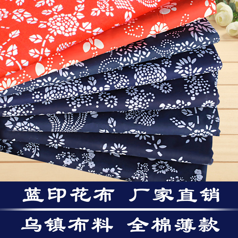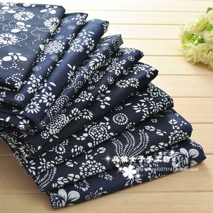 蓝印花布纯棉布料中国风面料蓝色舞台背景装 饰布幼儿园农家乐桌布