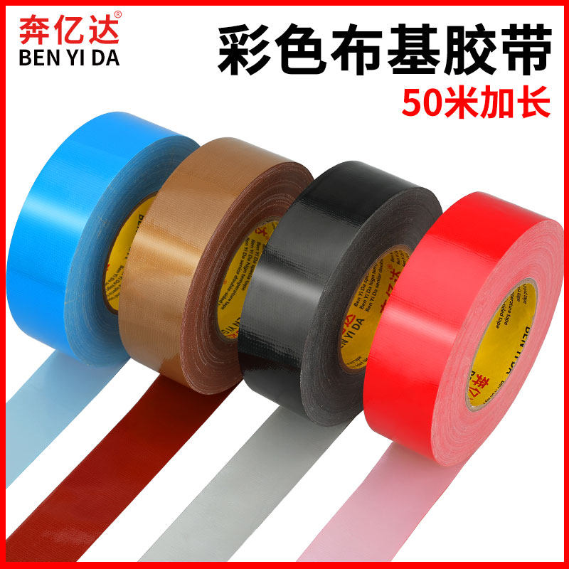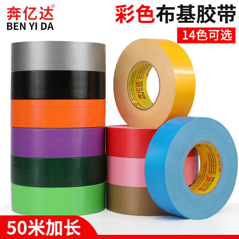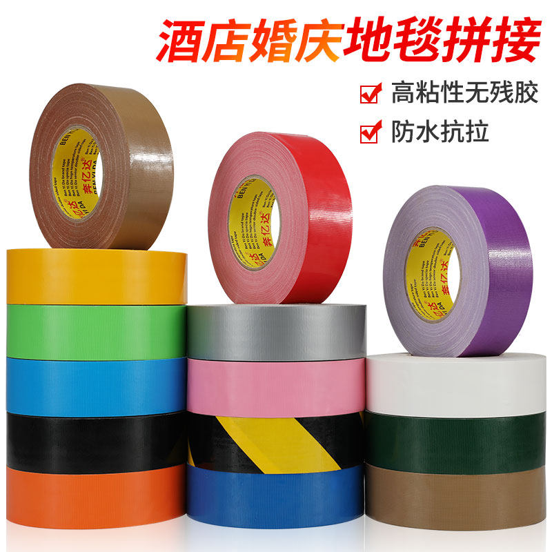 彩色婚庆单面布基胶带diy装 饰强力高粘影视大力胶地毯胶带无痕防水胶布黑黄红白蓝绿色耐磨地面地板警示胶带