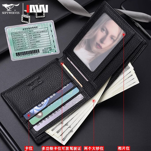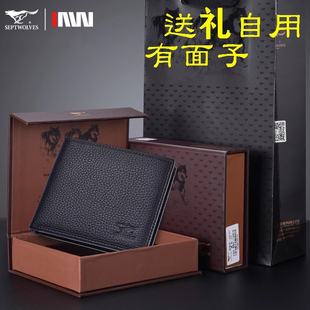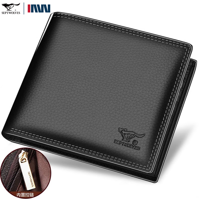真皮夹短款 2026新款 内带拉链超薄纯皮钱夹男土 钱包男士 七匹狼男式
