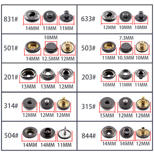 金属四合扣免缝按扣钉扣羽绒服扣子按压式 纽扣摁扣衣服暗扣子母扣