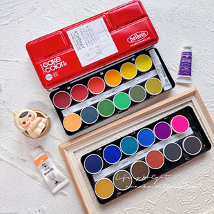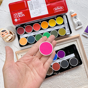 日本荷尔拜因不透明蛋糕盘24色12色hb不透明固体水彩粉饼颜料