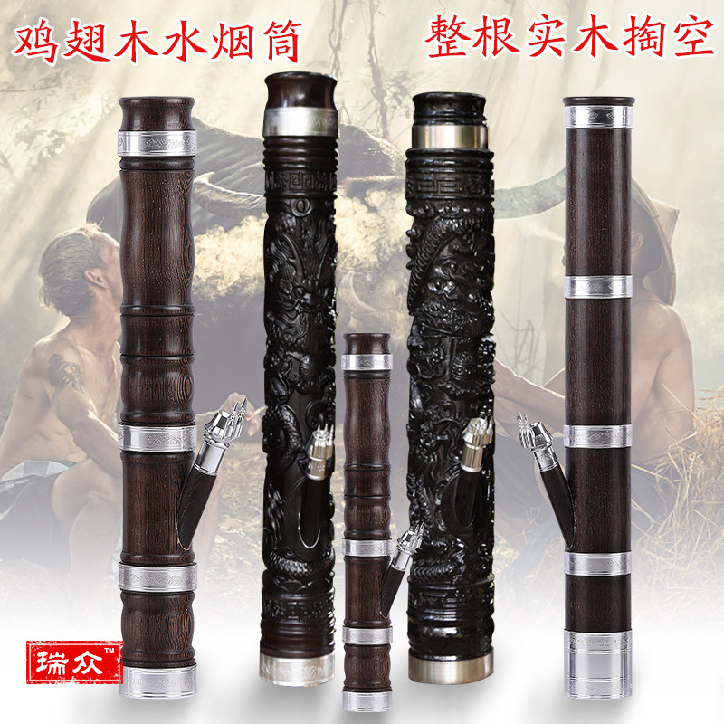高档云南鸡翅木水烟筒精致水烟壶雕龙实木烟斗水烟袋便携迷你烟简