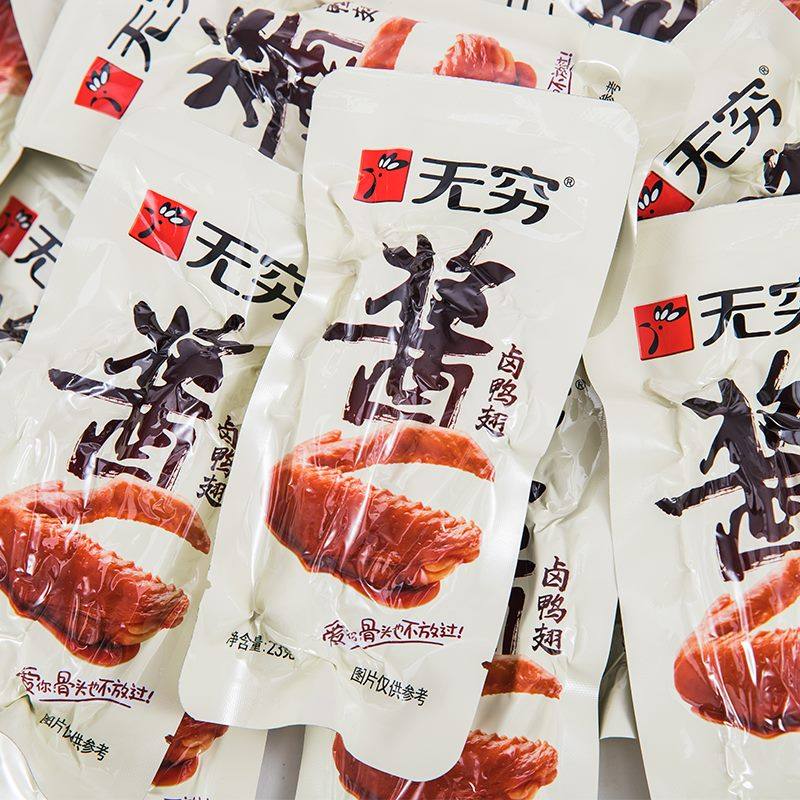 无穷酱卤鸭翅23g 广东特产微辣熟食网红女生休闲小零食 包盒装