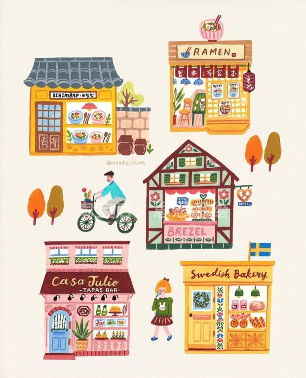 持续更自动发货 人物彩铅场景素材 C127 厨房小物插画电子图323张