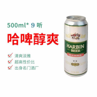 整箱听装 9听易拉罐装 全国包 哈尔滨啤酒10°哈啤醇爽500ml Harbin