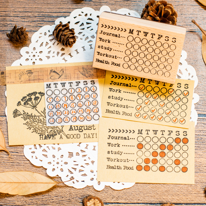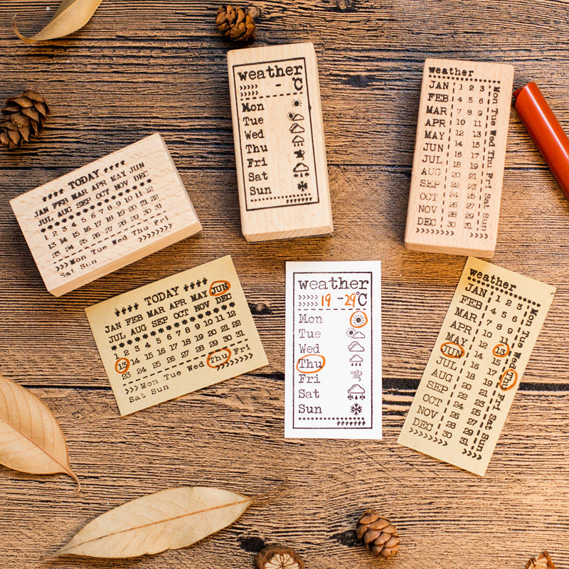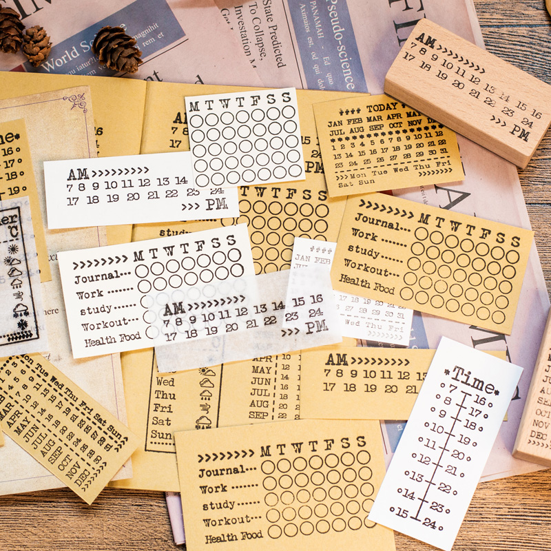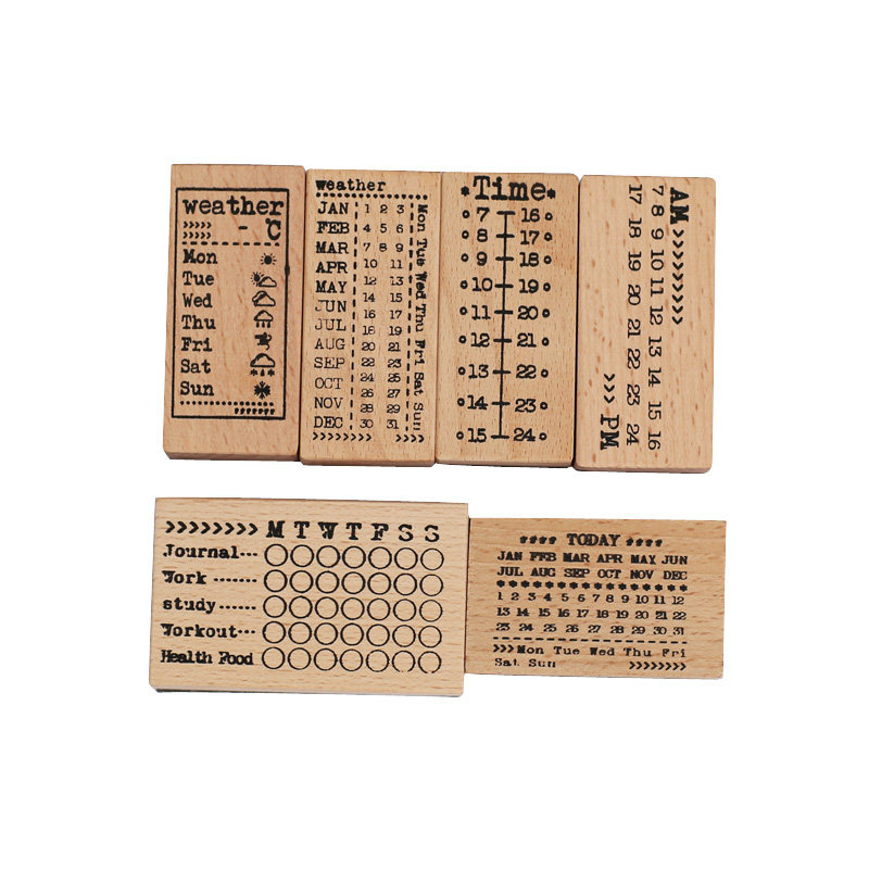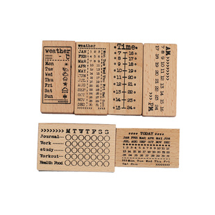 手帐装 星期时间轴图章 饰 BAR手账日付万年历日期实木印章 WEEK
