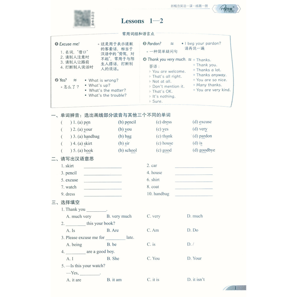 现天津出版 英语初阶课课练习题作业 1一课一练 新概念成人版 新概念第一册配套练习 集团 社 原延边出版 有答案 新概念英语 子金传媒