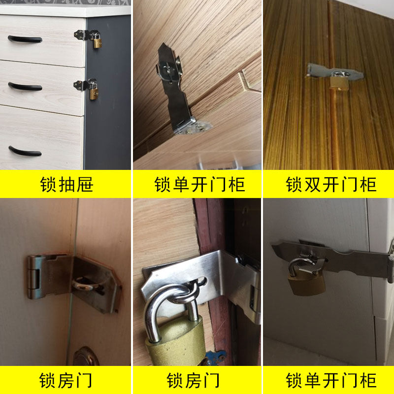 免开孔抽屉锁更衣柜子不锈钢门锁扣搭扣带锁老式 直角锁具家用锁牌