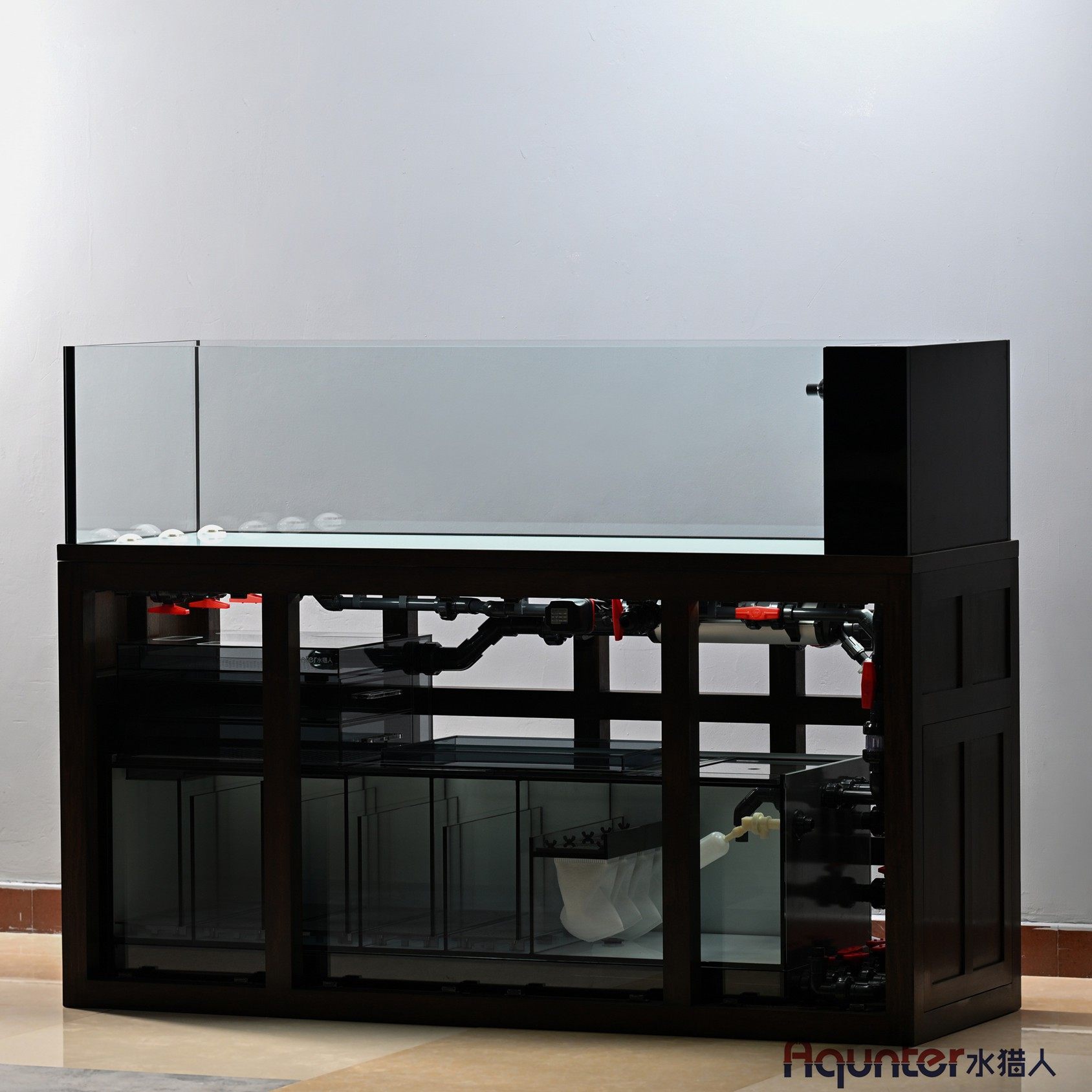 水猎人GR5.1溪流纯鱼两用版 溪流金鱼实木底柜超白玻璃底滤缸定制