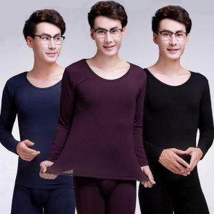 纯棉单件秋衣秋裤 上身薄款 打底保暖内衣上衣超低领长袖 莫代尔男士