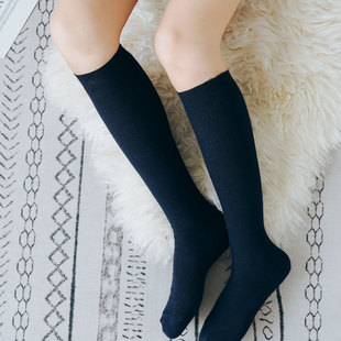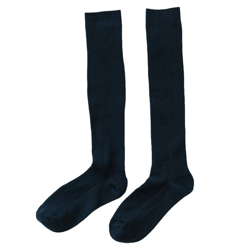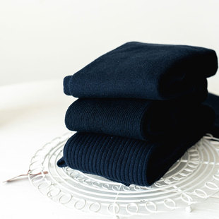 日系学生显瘦深蓝色长筒袜子女秋冬过膝袜学院风藏青色中筒小腿袜