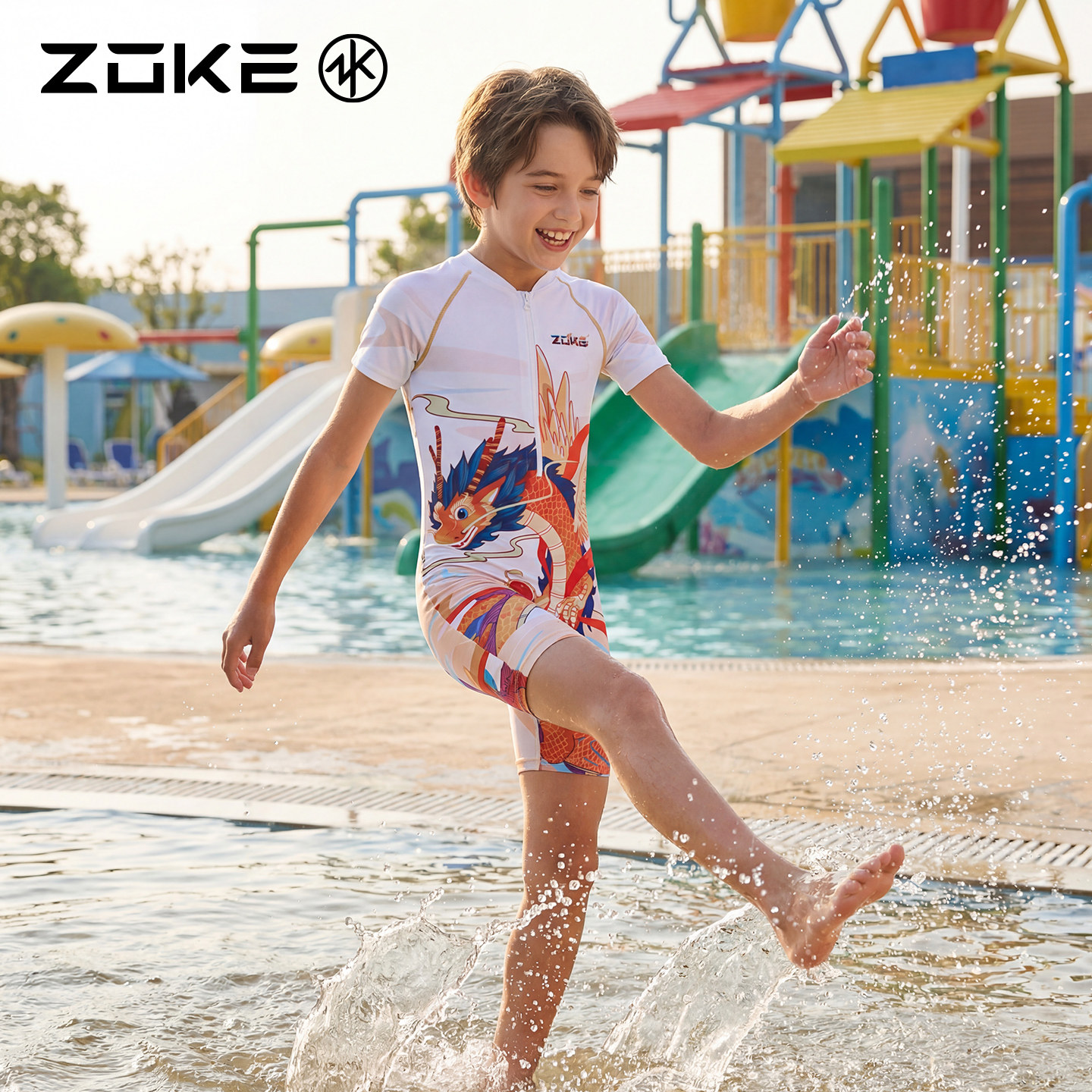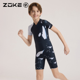 洲克儿童泳衣男童训练游泳衣zoke男孩泳裤 大童青少年专业防晒泳装