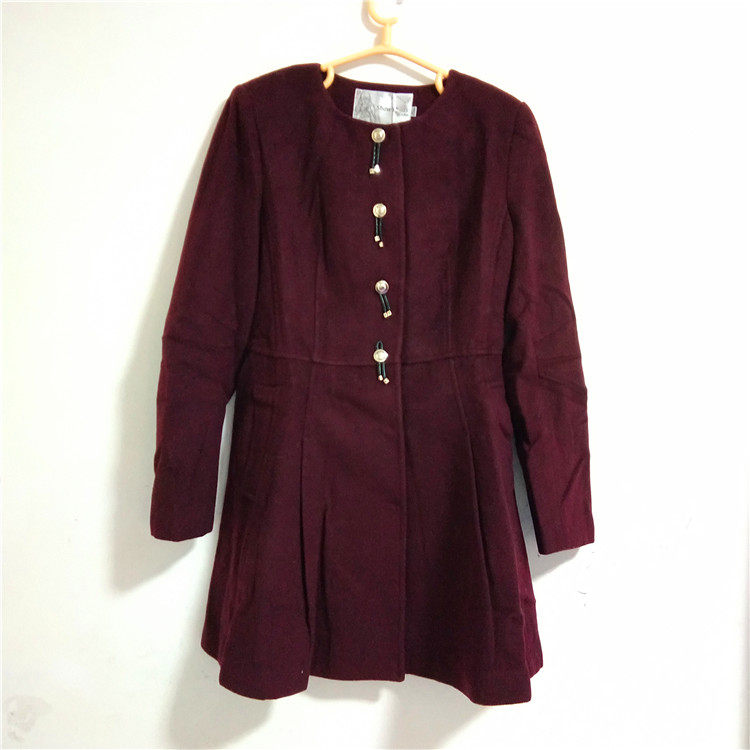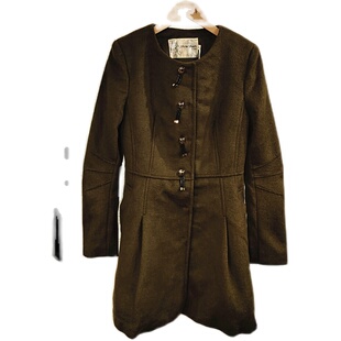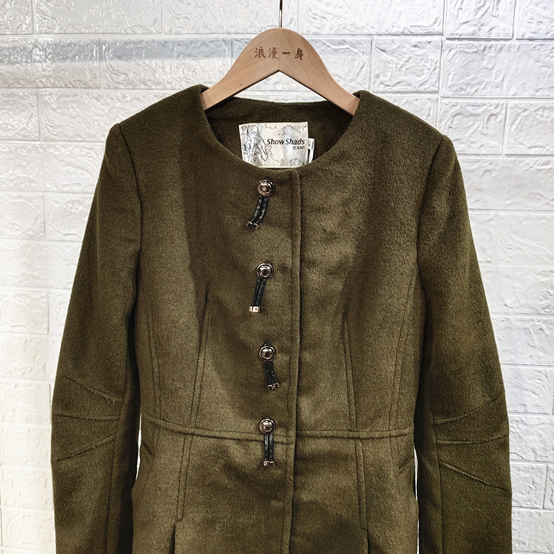 吸引力秋冬女呢子大衣纽扣长袖 可卸领 外套羊毛单排扣呢直筒中长款